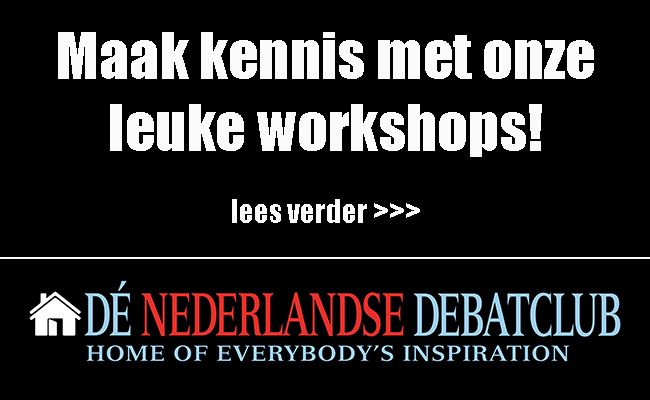 Overigens vragen organisaties uit het bedrijfsleven, de politiek en de overheid ons ook regelmatig voor inspiratie- en impactsessies op het gebied van alle genoemde persoonlijke vaardigheden. Een workshop debatteren wordt al steeds vaker onderdeel van een inspirerend bedrijfs- of teamuitje!